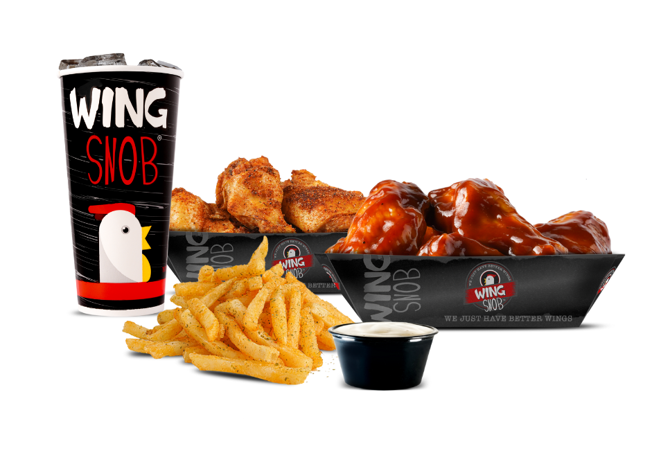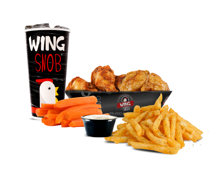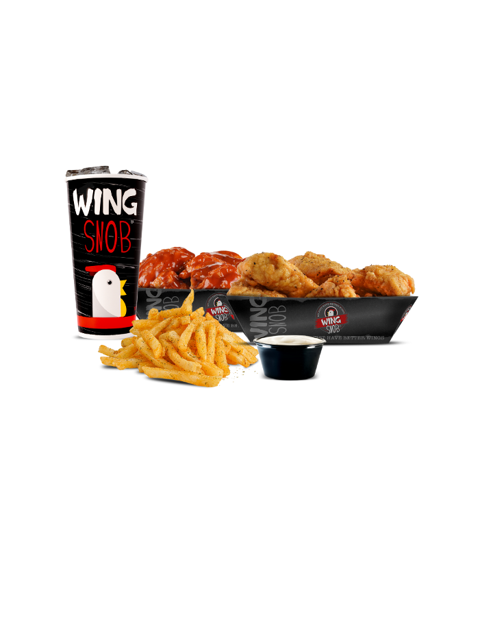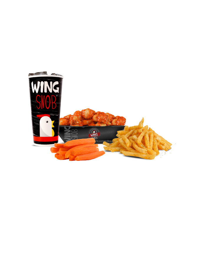 Includes 8 wings (4 boneless/4 traditional) plus seasoned fries, veggies OR 4oz coleslaw & a fountain drink.