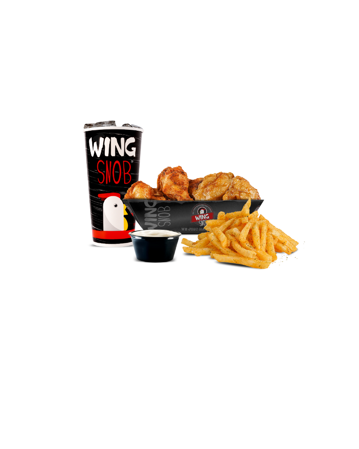 Includes 6 traditional wings plus a side with a fountain drink.