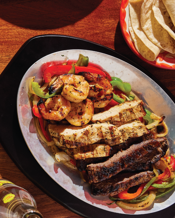 Our signature fajitas are served with grilled onions and peppers with your choice of corn or flour tortillas, guacamole, sour cream, pico de gallo, our famous twice-refried beans, and Mexican rice