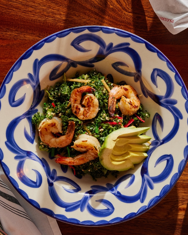 Kale dressed with our signature spicy Caesar tossed with Cotija cheese and crispy tortilla and can be topped with choice of protein