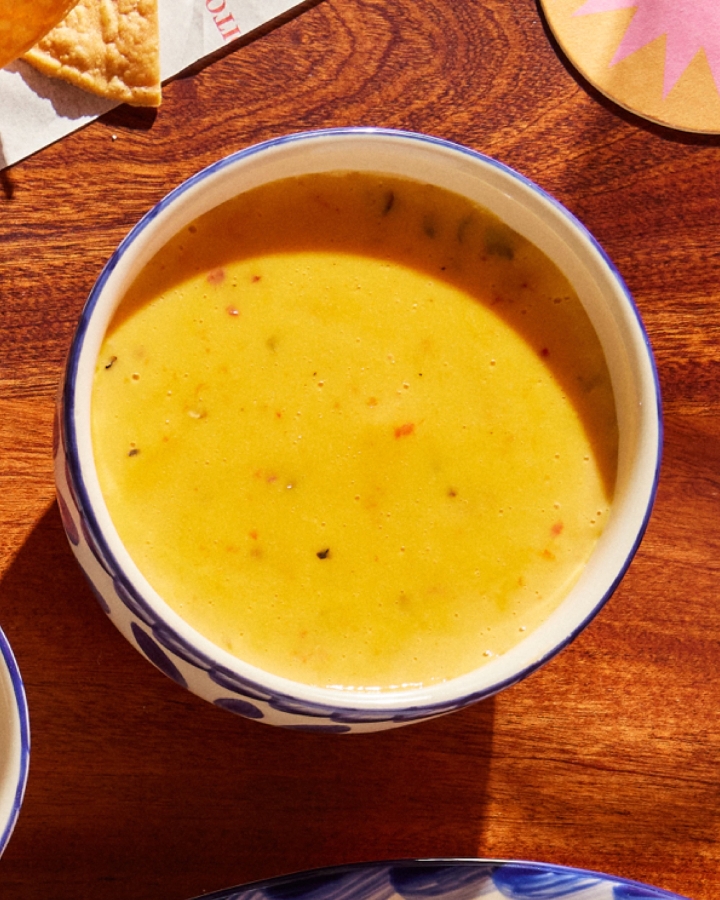 Traditional cheese dip with green chiles and tomato