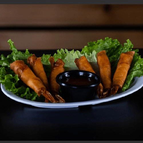 Large shrimp wrapped in fried rice paper served with sweet chili sauce. Serving is 6 large shrimp
