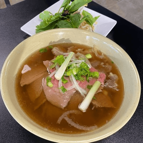 Steak, brisket, tendon, and tripe with rice noodle, our famous all natual bone broth and topped with white onion, green onion, and cilantro . Includes side of basil, beansprouts, lime, jalepeno, and cilantro