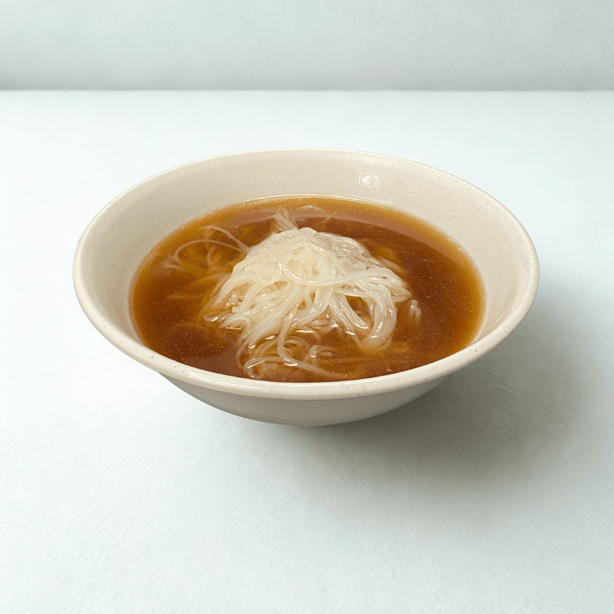 A16 oz meatless broth with rice noodle and topped with onions and cilantro