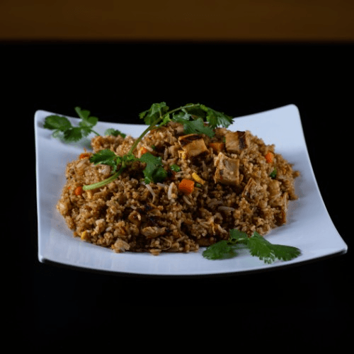 Fried rice with chicken, peas, and carrots