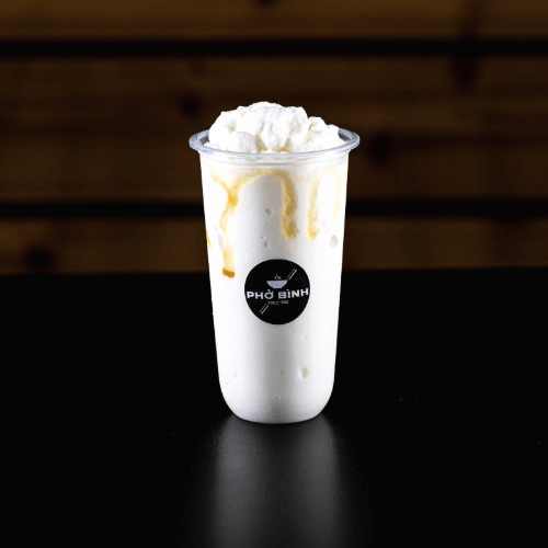 Iced coffee made with whole milk, traditional Vietnamese coffee, and topped with cream cheese mousse. Unable to adjust sweetness on this drink.