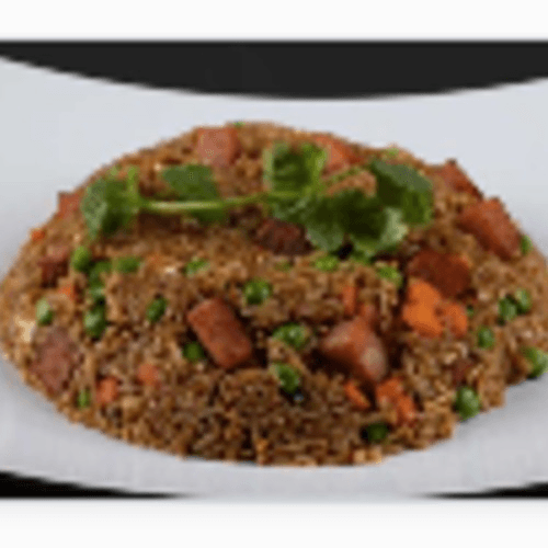 Fried rice with pork, peas and carrots